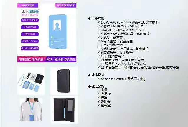 工卡定位器GK309是為人員智慧管理而設(shè)計的智能電子工作證,能夠廣泛應(yīng)用于環(huán)衛(wèi)巡查、路政巡檢、人員監(jiān)護(hù)、外勤管理等領(lǐng)域。它輕薄小巧,可以隨身攜帶,支持雙向通話和語音播報,并且同步接收北斗與GPS信號,結(jié)合Wi-Fi定位、LBS定位,定位更快更準(zhǔn)。